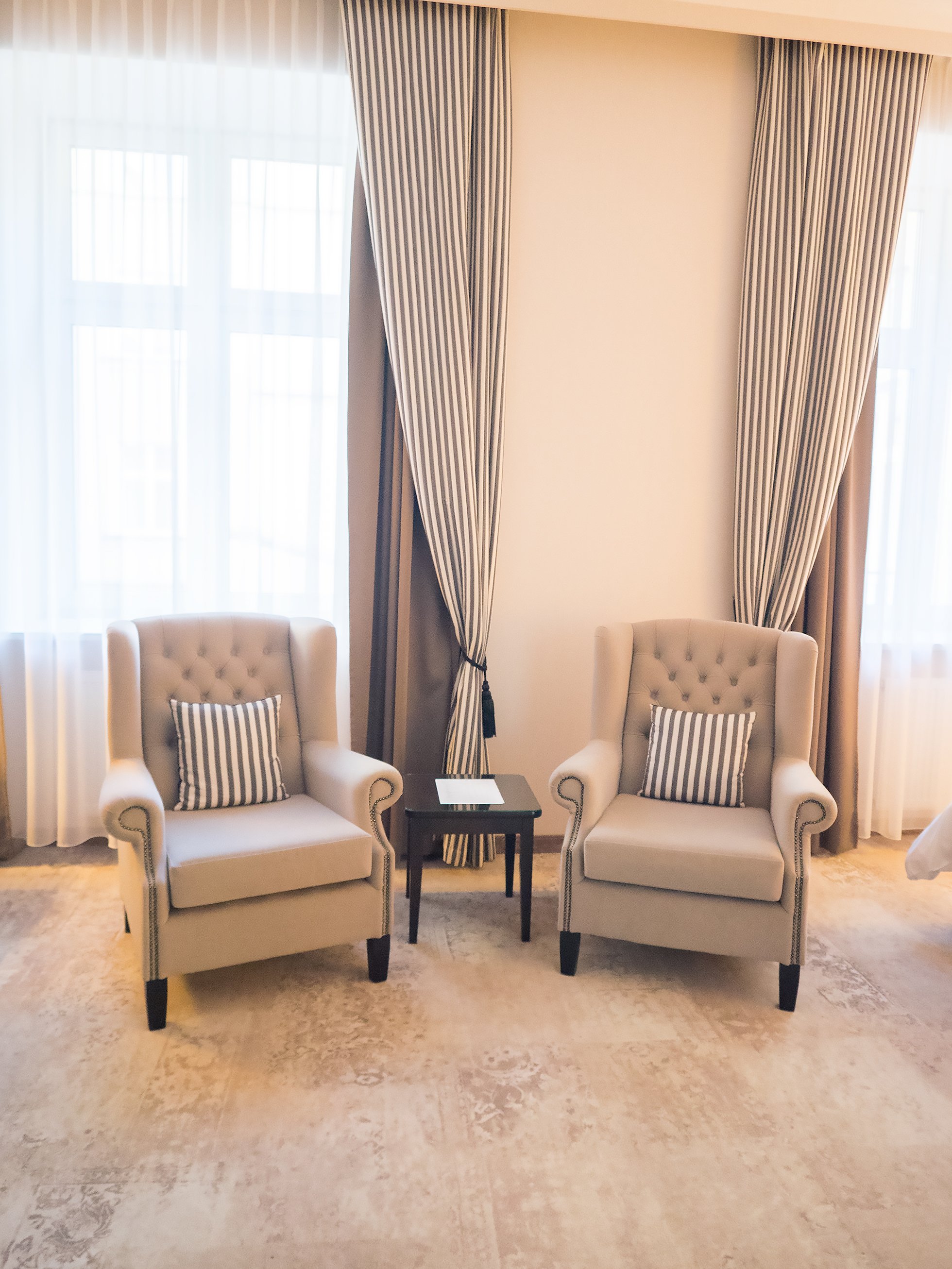 Alkuillasta puimme juhla-asut päällemme ja siirryimme Hotellin ravintolaan nauttimaan maukkaan illallisen. Carpaccio kurpitsa, tautisen hyvä lohi ja sitäkin parempi selleripyre sai makunystyrät taivaaseen. Oli ihana viettää rauhallinen ja tunnelmallinen illallinen keskellä viikkoa kahdestaan. Yksistään illallinen olisi ollut meille arjen luksusta. Maistuvan ruuan jälkeen oli ihana sujahtaa mahat täynnä hotellin silkin pehmeiden lakanoiden väliin. Katsoimme vielä pitkän leffan, joka oli myös luksusta kiireisen arjen keskellä. Päätimme ottaa tällaisesta ihanasta yhteisestä ajasta tavan ja ainakin muutaman kerran vuodessa ottaa aikaa arjen keskellä ja suunnata kotikaupungissa hotelliin. Suosittelen lämpimästi tätä kaikille pariskunnille, ystäville ja miksei myös itselle omaksi hemmotteluksi.