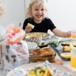 Täytimme lounas paahtoleivät munakokkelilla, avokadolla ja vuohenjuustolevitteellä. Mausteiksi tuli suolaa, pippuria, kevätsipulia, paprikajauhetta, silmusalaattia sekä sitruunaa. Miniluumutomaatit lisättiin sellaisenaan Lionelin poksuteltavaksi.
