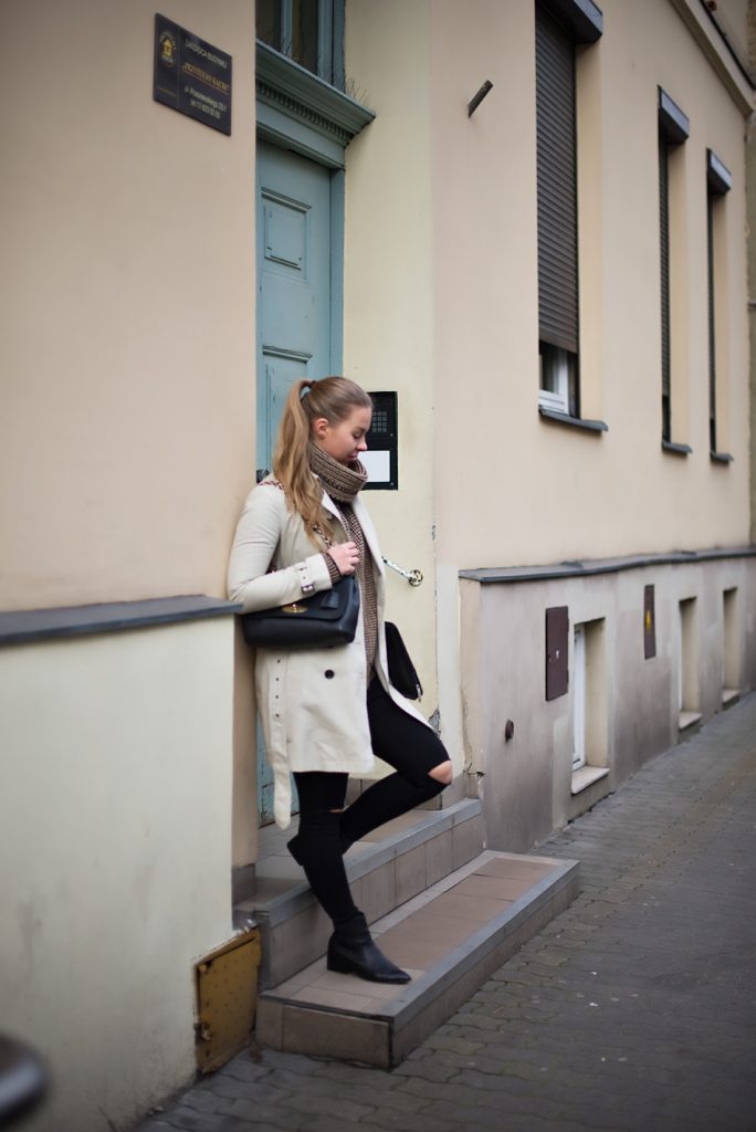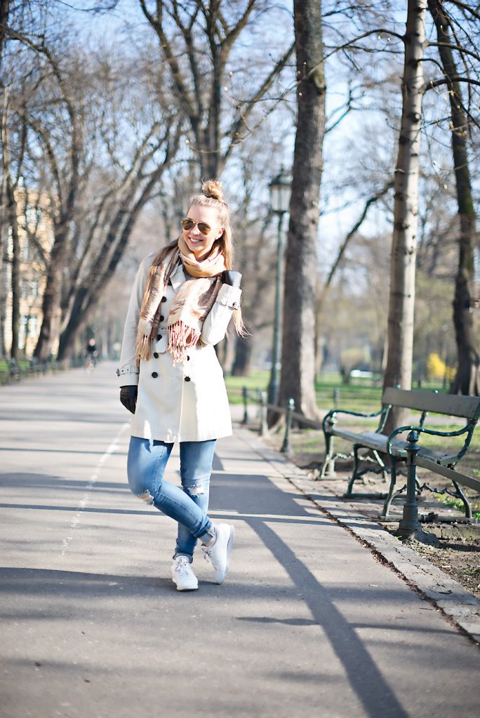 Trench coat & white sneakers